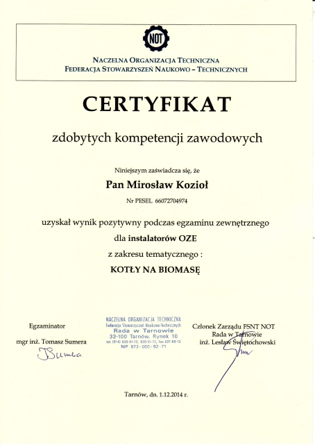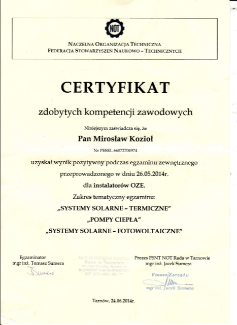 Korzystając z moich usług macie Państwo pewność wyboru kompetentnego serwisanta!
