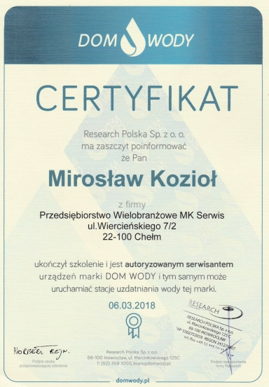 Korzystając z moich usług macie Państwo pewność wyboru kompetentnego serwisanta!